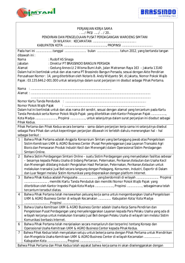 Contoh surat perjanjian kerjasama perusahaan.doc. Contoh surat perjanjian adanya kerjasama usaha perorangan tersebut ialah sebagai berikut. Sekian dulu penjelasan singkat mengenai contoh surat permohonan kerjasama dalam kesempatan kali ini.