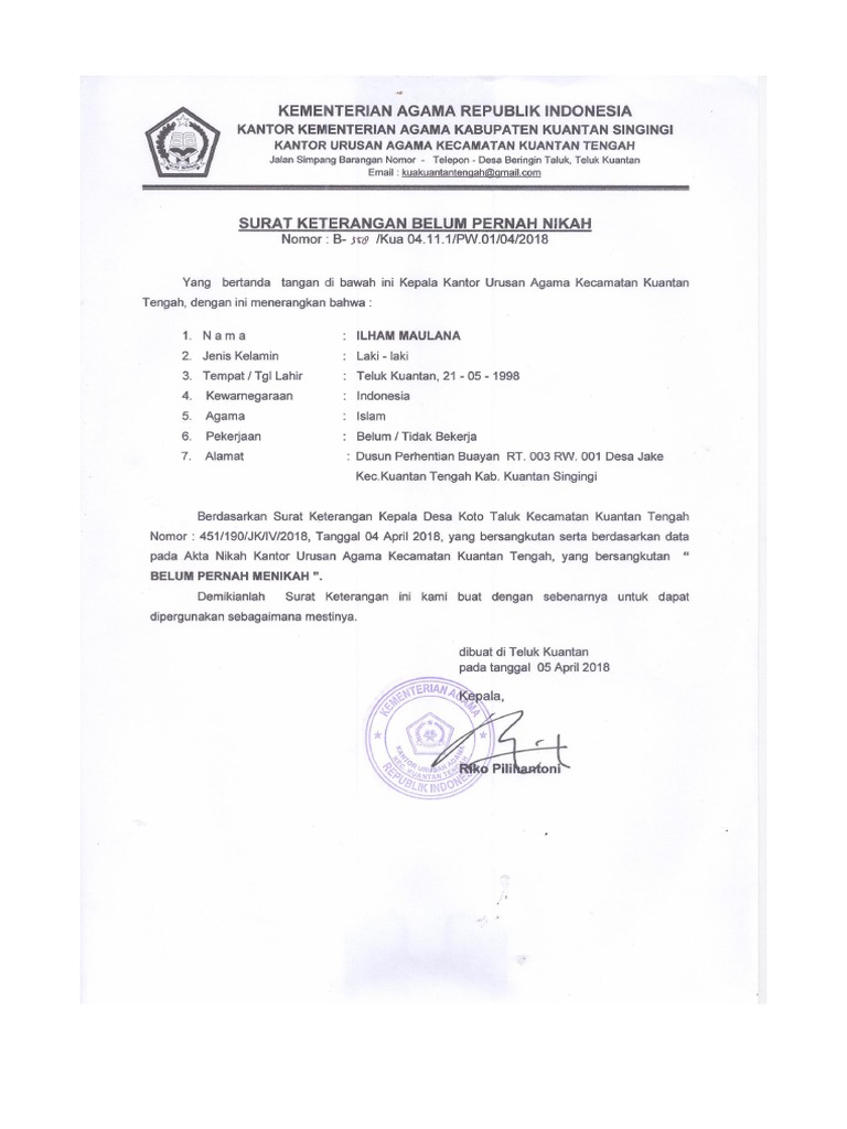 Apakah kamu pernah diminta untuk membuat surat pernyataan ketika berurusan dengan pihak lain atau dengan suatu instansi? Demikianlah informasi yang dapat admin bagikan, semoga bermanfaat buat rekan semuanya. Saya yang bertanda tangan di bawah ini : Contoh surat pernyataan belum pernah menikah untuk kua.
