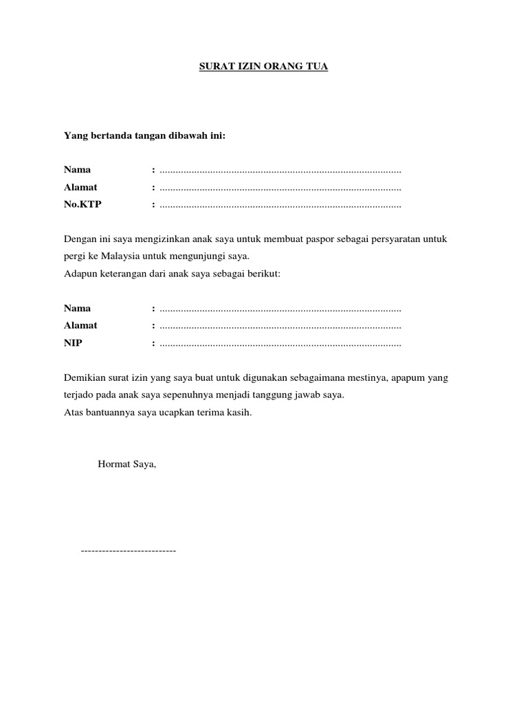 Contoh surat izin orang tua.