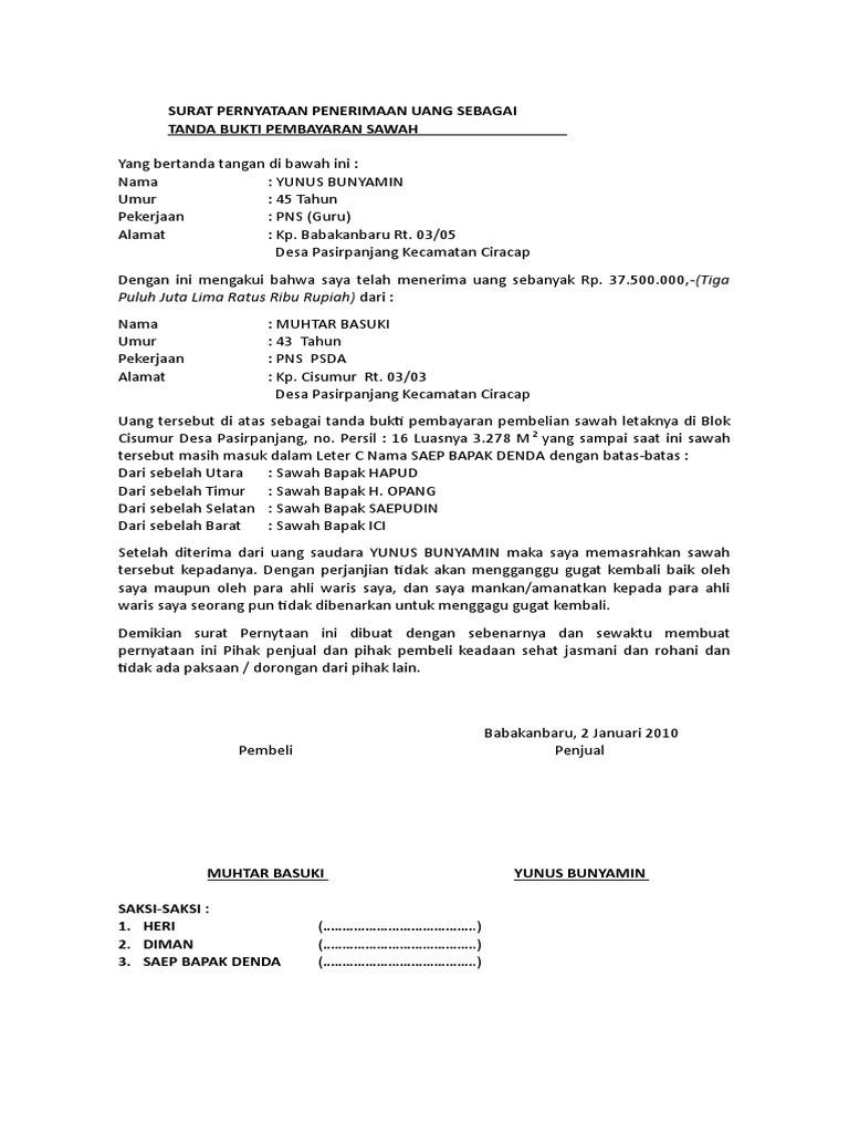 Mari kita lihat contoh surat pernyataan kesanggupan membayar ganti rugi berikut ini.