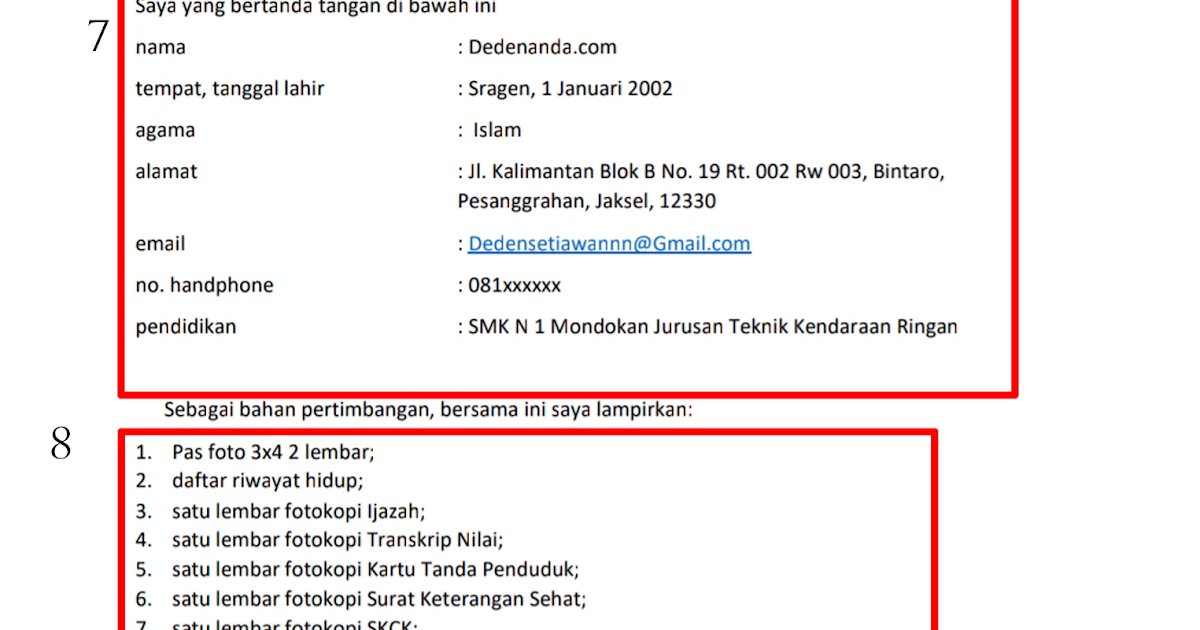 Jadi baca sampai selesai ya. Panduan cara membuat surat lamaran seperti lamaran umum, fresh graduate, via email, tulis tangan, sebagai guru, cpns, di hotel, di bank, di toko selain itu, didalam surat lamaran kerja juga tidak memerluan kop surat atau kepala surat dan juga nomor surat. Dengan begitu surat yang telah dibuat bisa diterima oleh semua kalangan.