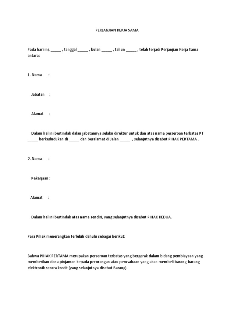 34+ Pengadaan Barang Contoh Surat Perjanjian Kerjasama Jasa Pictures. Contoh surat perjanjian kerjasama perusahaan dagang,jasa, hutang perjanjian sewa guna usaha (leasing). Nah, surat perjanjian kerjasama juga terdiri dari dua jenis: