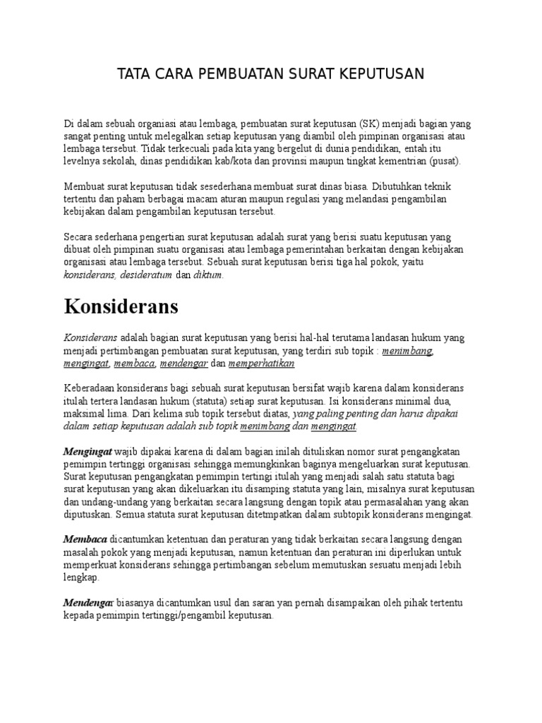 Tata Cara Pembuatan Surat Keputusan Bupati - Contoh ... from s1.studylibid.com