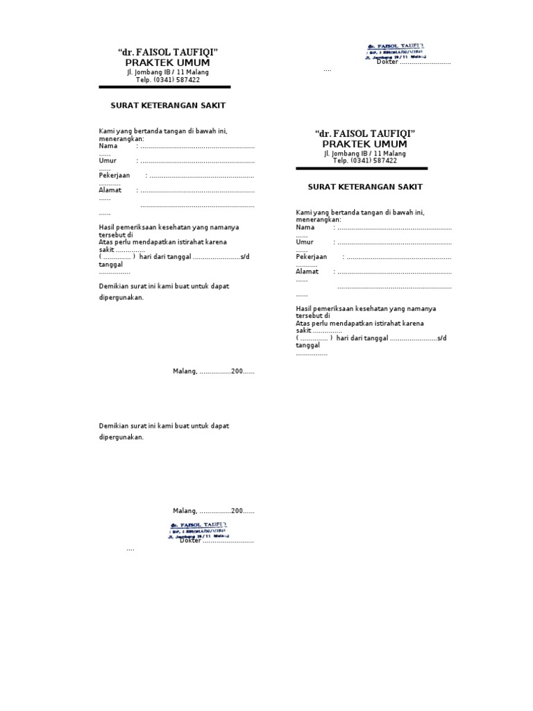 Salah satu alasan tersebut adalah dikarenakan sakit. Documents similar to contoh surat dokter. Jasa pembuatan surat dokter jakarta tangerang bekasi depok.