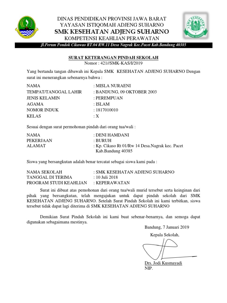 39+ Contoh Surat Pindah Sekolah Smk Doc PNG