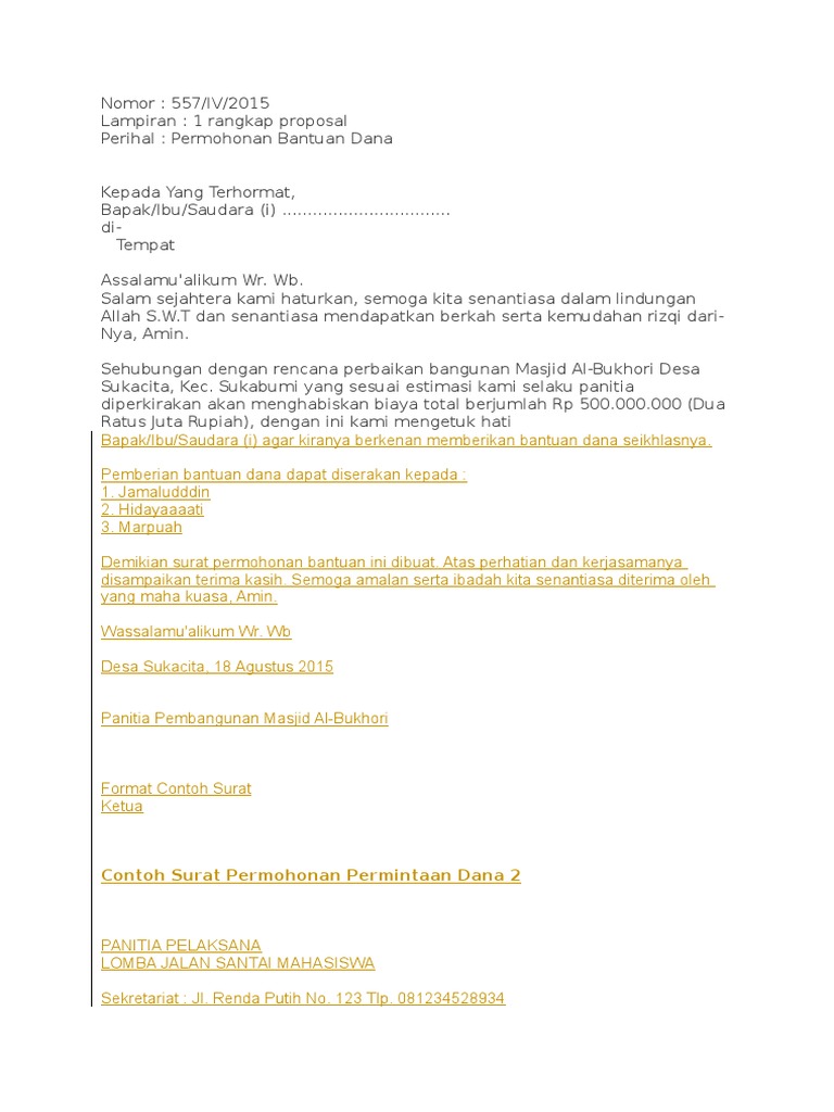 Masjid miftahul khaer alekarajae terletak di tepi perempatan jalan dusun alekarajae desa padanglampe kecamatan ma'rang kabupaten pangkep, yang sangat strategis bagi ummat islam yang bertempat tinggal di wilayah sekitar. Adapun surat pengantar proposal sebenarnya sangat sederhana, dan bagi anda yang masih belum mengerti, berikut ini adalah contohnya.kop surat. Contoh surat pengantar proposal permohonan bantuan dana.