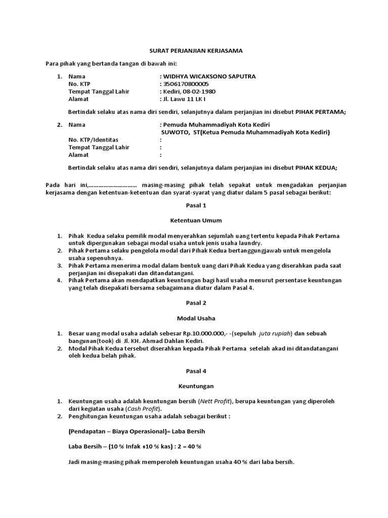 Contoh Surat Perjanjian Kerja Waktu Tertentu Pdf - Contoh ... from suratku.id
