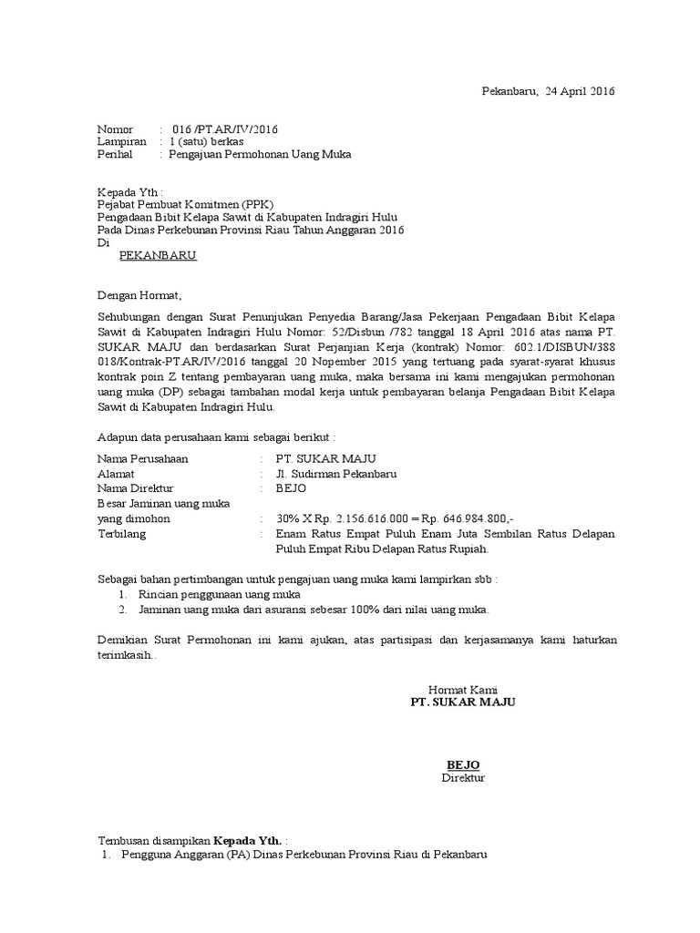 Contoh Permohonan Uang Muka proyek from imgv2-2-f.scribdassets.com