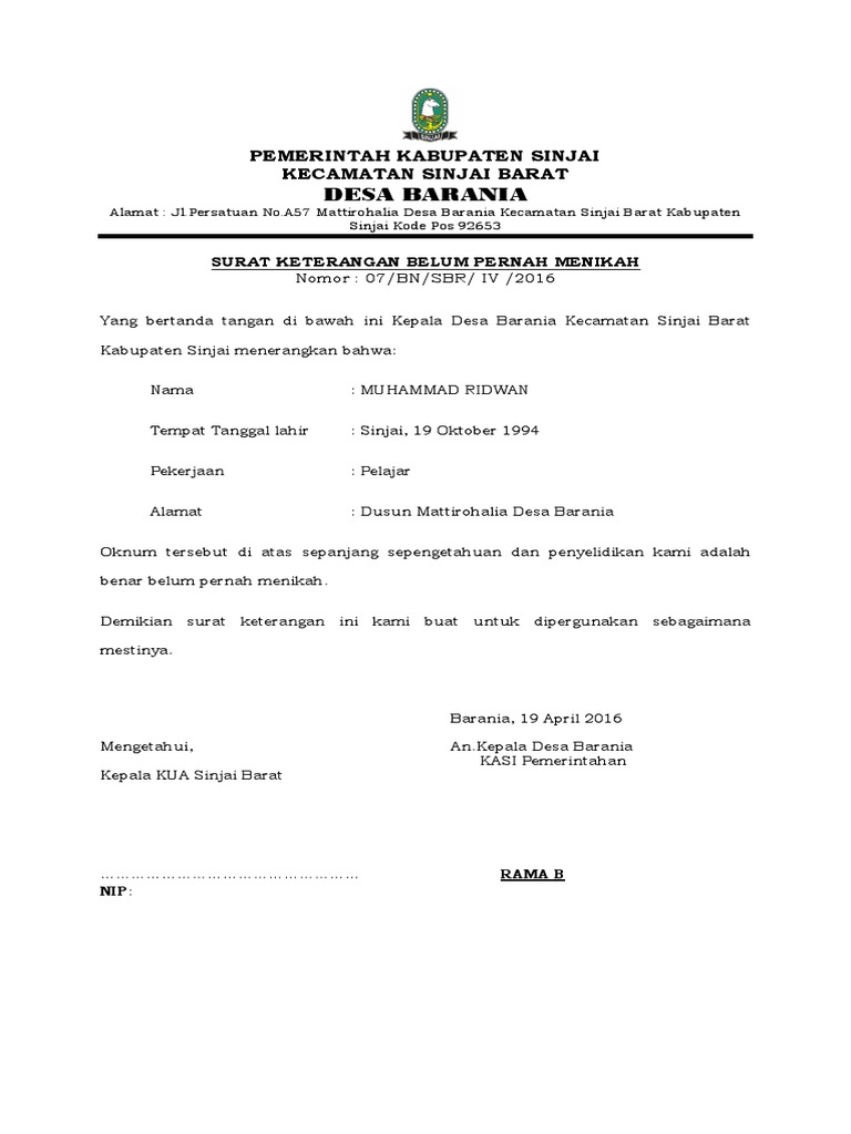 Download Contoh Surat Pernyataan Belum Menikah Dari Kelurahan Gif