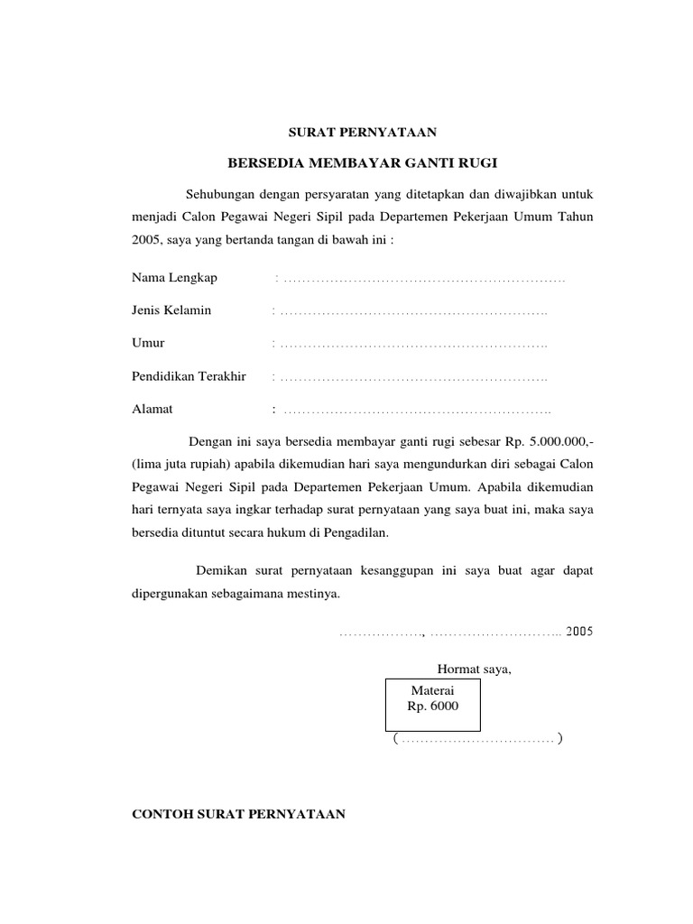Contoh surat pernyataan ini bisa dijadikan referensi anda. Selain dalam proses pelaksanaan pekerjaan orang akan membuat pernyataan juga menjadikan surat ini sebagai catatan untuk tidak mengulangi kesalahan. Cara membuat surat pernyataan kesanggupan tidaklah begitu sulit, pada umumnya sama saja dengan surat pernyataan lainnya. Dalam hal ini perlu diketahui bahwa surat keterangan adalah.