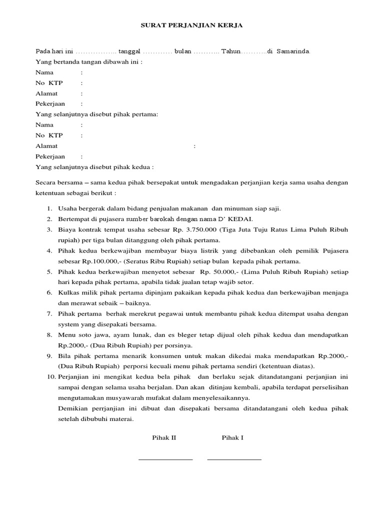 Yang bertanda tangan dibawah ini : Pada hari ini, senin tanggal 20 bulan januari tahun 2014, di makassar, yang bertanda 1. Download surat perjanjian kerja bersama. All formats available for pc, mac, ebook readers and other mobile devices.