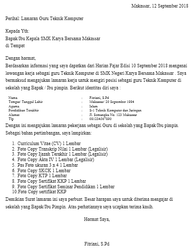 Indonesia cukup maju dalam bidang industri sehingga ada banyak pabrik yang berdiri di sini. Surat lamaran kerja yang baik dan benar terdiri dari beberapa bagian seperti: Semoga senantiasa sehat selalu ya.