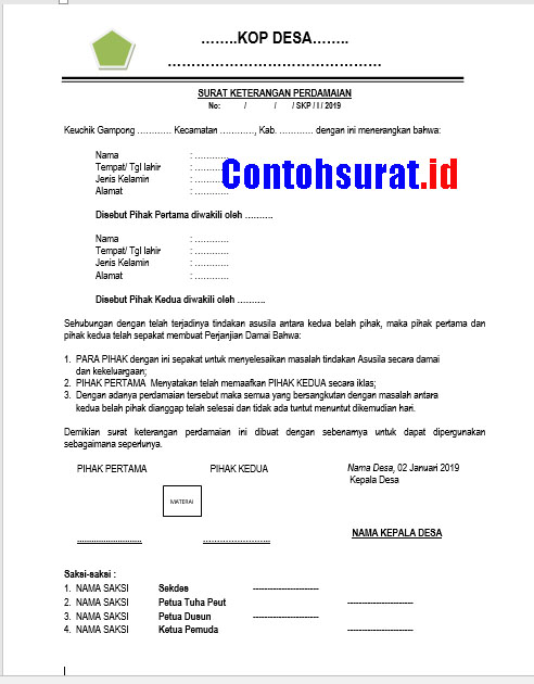 Contoh Surat Perjanjian Damai Kecelakaan - Gawe CV from gawecv.com