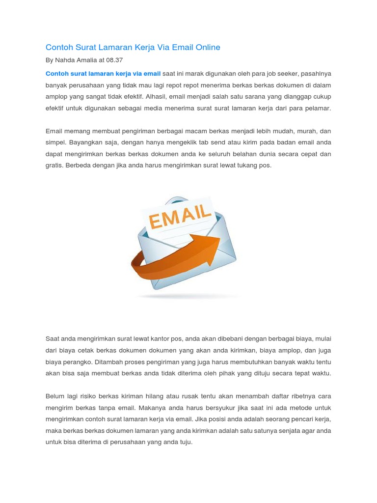 View Contoh Surat Lamaran Kerja Via Email Beserta Lampirannya Pics. Berikut adalah beberapa contoh surat lamaran via email sebagai bahan referensi untuk anda. Oleh karena itu, anda yang akan melamar kerja perlu juga mempelajari contoh surat lamaran kerja via email ini.